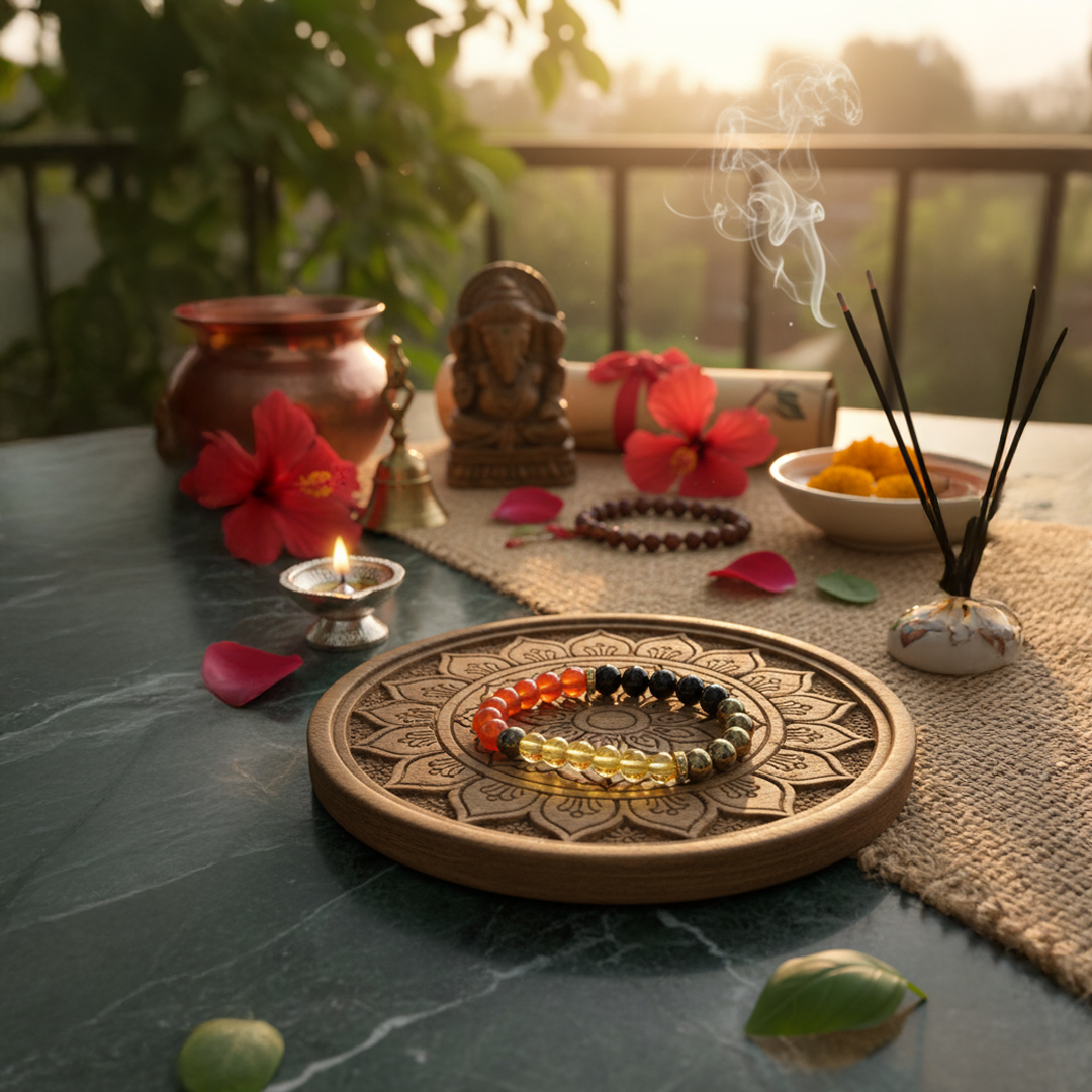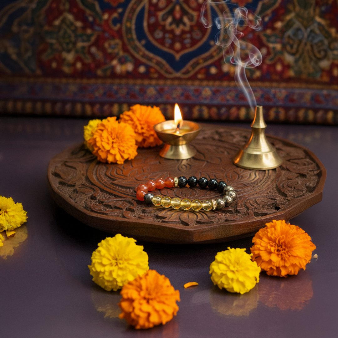 The bracelet is finished with elegant metal spacers, giving it a polished spiritual look suitable for everyday wear, meditation or gifting.